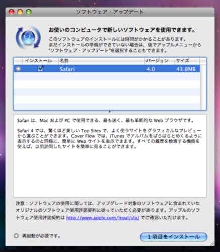 早くもソフトウェアアップデートでインストールできる でも、再起動が必要
